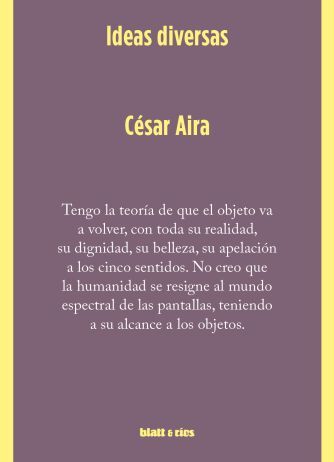 Tengo la teoría de que el objeto va a volver, con toda su realidad, su dignidad, su belleza, su apelación a los cinco sentidos. No creo que la humanidad se resigne al mundo espectral de las pantallas, teniendo a su alcance a los objetos.